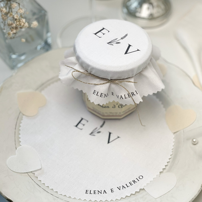 Le nostre bomboniere sono realizzate con tessuti naturali di qualità come il cotone e il lino. Utilizziamo tessuti neutri (bianco, avorio e panna) sui quali stampiamo la grafica personalizzata.