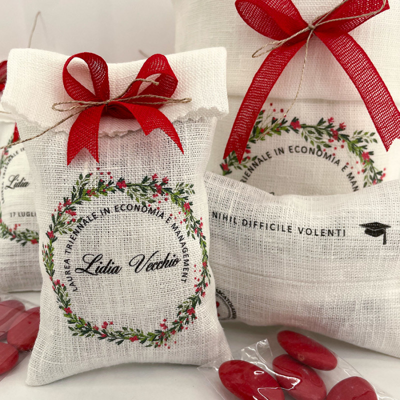 Sacchettino portaconfetti medio, realizzato con stampa diretta su tessuti eco-friendly di altissima qualità come il cotone o il puro lino. Scegli il tuo confezionamento e la tua profumazione. Personalizzalo ora con il tuo testo!
