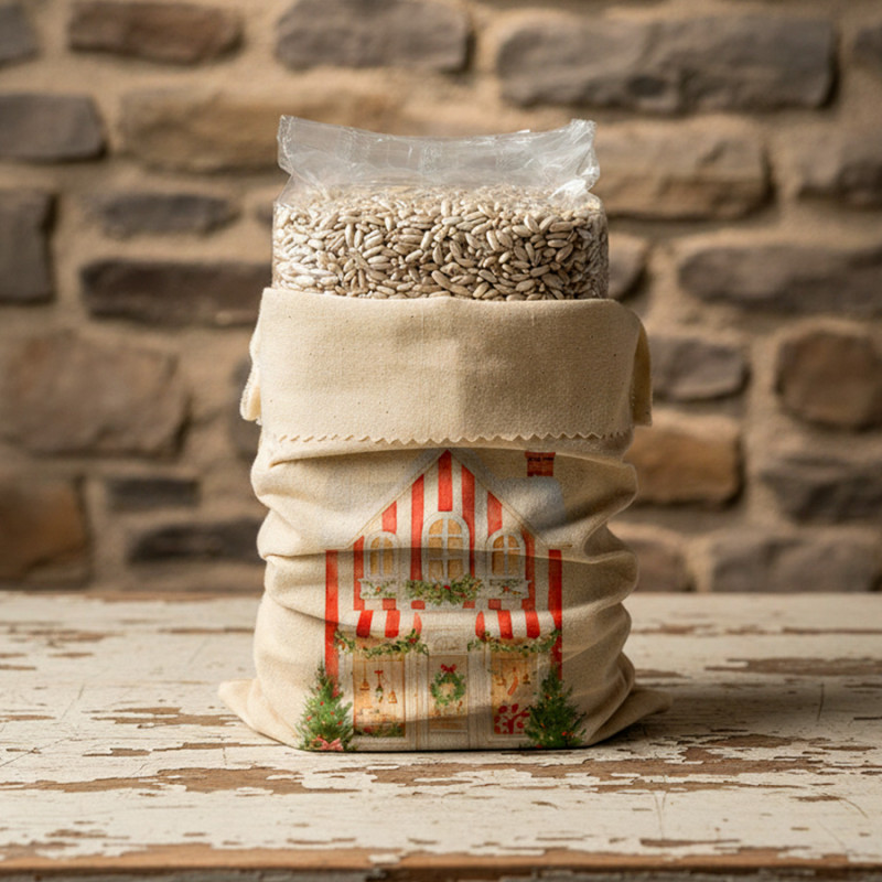 Questi sacchettini versatili sono l'ideale per confezionare piccoli regali o per contenere prodotti alimentari artigianali da donare durante le festività. La loro capienza li rende perfetti per: un sacchetto di riso (ad esempio da 500gr o 1kg), un sacchetto di pasta corta artigianale (da 500gr o 1kg), o dolci tipici delle feste come un piccolo panforte artigianale.